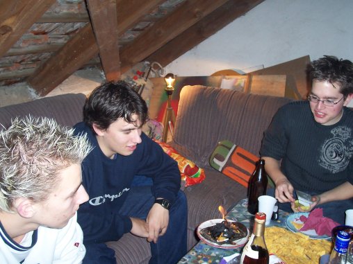 Ok, hier haben wir Stepper, Ströll und Dötz (von links) auf der Saufen für Jesus Tour 2003.